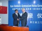 Schulleiter Herr Scheuermann fährt nach San Men und unterschreibt erste offizielle Schulpartnerschaft zwischen einer chinesischen und einer hessischen Schule – der Bürgermeister von San Men (ca. 500 000 Einwohner) will Städtepartnerschaft. |